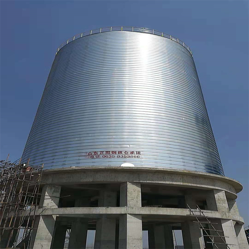 1;钢板仓在建造过程中,完全由专用设备施工,螺旋咬合钢板仓专用设备由承载机架、开卷机、弯折机和成型机组成,在卷制过程中,将495 mm宽的卷板送入成型机扎制成所需的几何形状,再通过折弯机弯折、咬口、仓体外壁咬制成一条五倍于材料厚度 30mm-40mm宽的螺旋凸条,大大加强了仓体的承载能力,使钢板仓的整体强度、稳定性、抗震性优于其它池罐。另外,利蒲仓采用的材料是防腐性能特别强的镀锌钢板,利浦钢板仓的仓体直径在5---20m以内选择,高度可在30m以下选用,这使得它的寿命也比其它池罐长。